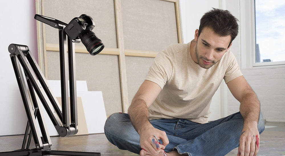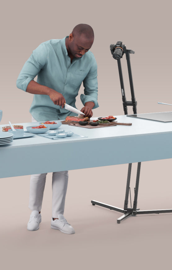 Overhead shots are essential to immerse and show what you are working on to your audience. Classic tripods can't do this.